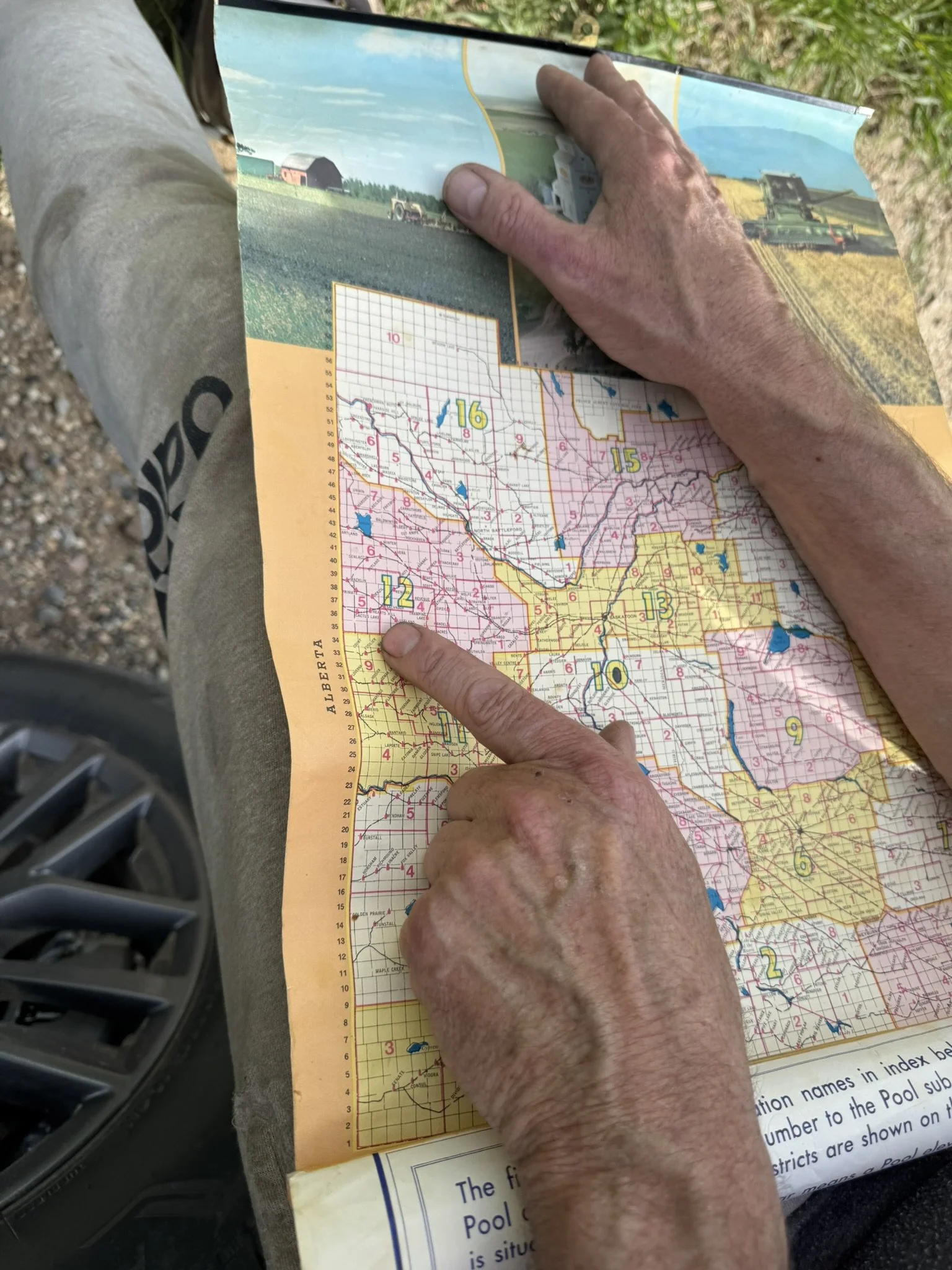 Darren showing me his 1973 map of all the Sask Pool elevators.