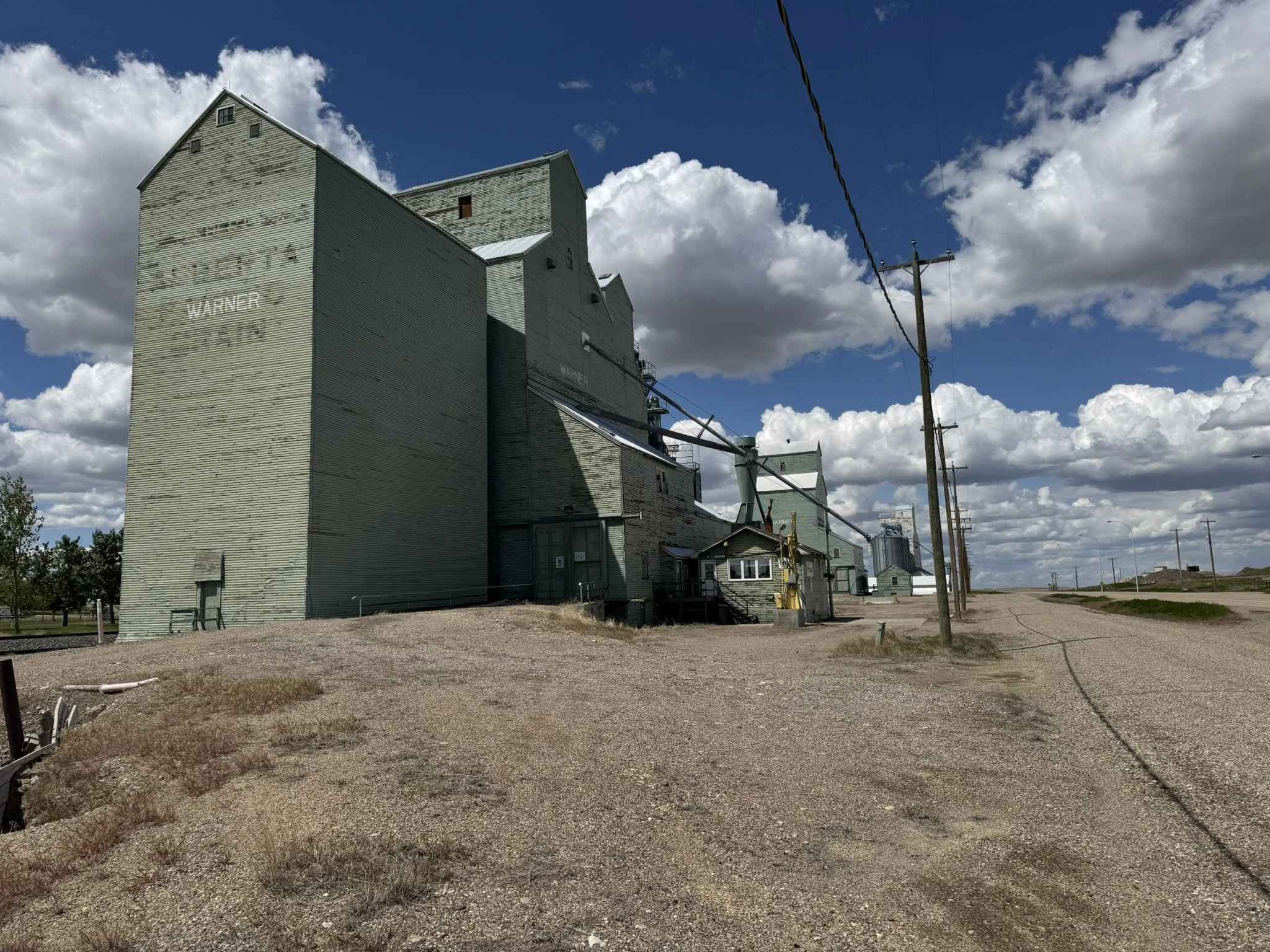 Three in a row: the three elevators still remaining in Warner, Alberta